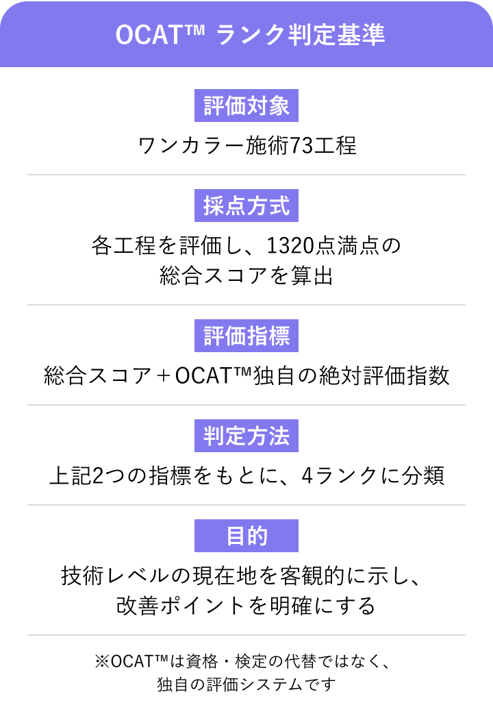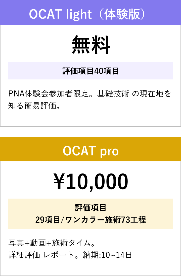 OCAT(One Color Application Test)とは、PNAが特許を取得した画期的な技術評価システム。感覚に頼っていたワンカラー技術を客観的に「数値化」し、あなたの課題を見える化します。
