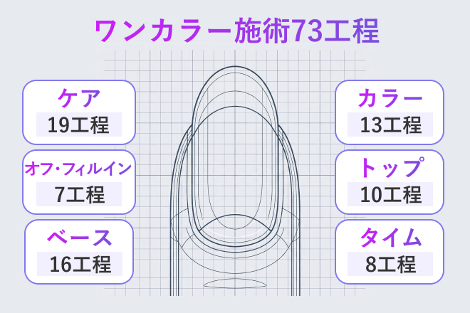 そこで私はワンカラーを徹底的に研究し、施術を「73の工程」に定義。この中で、あなたがどこができていないかを見える化するシステムを開発しました。本当の課題さえ分かれば、技術の悩みは必ず解決します。お客様を笑顔に変える、一生モノの基礎技術を確実に身につけましょう。